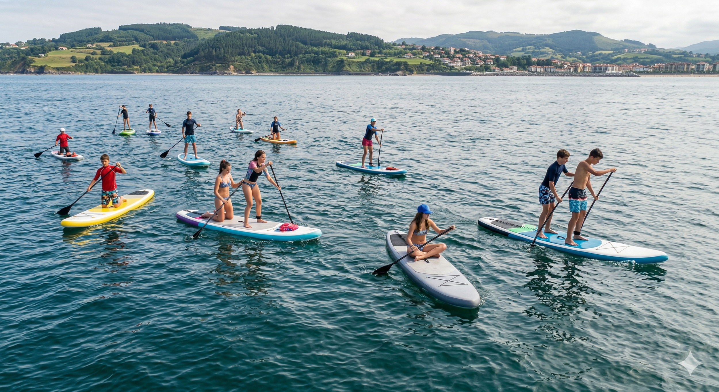 Las actividades deportivas incluyen playa, kayak, paddle surf y juegos al aire libre, aprovechando el entorno privilegiado de Hondarribia.